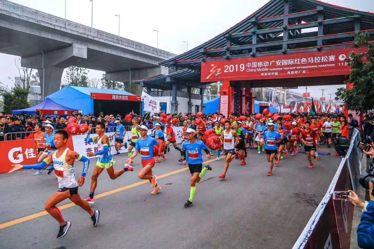 韵动中国·2019广安国际红色马拉松赛在四川广安开赛。除国内选手外,有来自埃塞俄比亚、肯尼亚、新加坡、德国、韩国、日本、美国、加拿大、马来西亚等十余个国家和地区的外籍选手,总计1万5千人亮相本届广安红马。