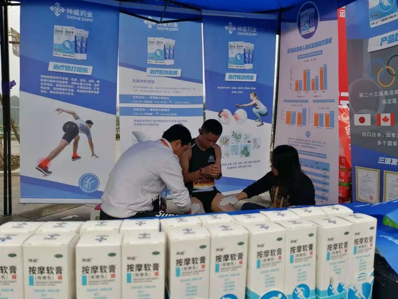 在本届2019广安红马场下,星空电竞药业设立专属自助体验区,携专为治疗运动劳损的全新升级款按摩软膏供广大跑友亲身体验。现场参加本次体验活动的跑友热情高涨,争相体验。长期从事体育运动的人群都有着各自的运动损伤困扰。体验过后,大家纷纷表示这款按摩软膏在对缓解肌肉酸痛和活血化瘀方面有很明显的治疗效果。