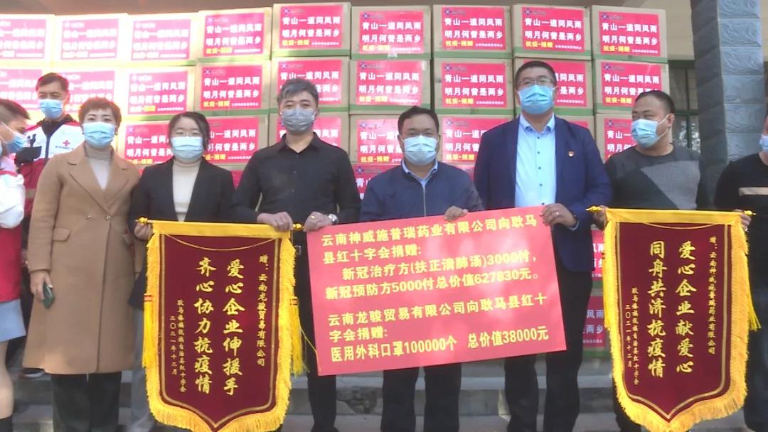 “‘青山一道同风雨,明月何曾是两乡’。这句饱含患难真情、大爱无疆的诗词,被一一写在了一批总价值62.7万元的疫情防控物资纸箱上。”这是2021年12月30日,在云南省临沧市耿马傣族佤族自治县孟定镇,云南星空电竞施普瑞药业有限公司举办的捐赠仪式现场看到的场景。