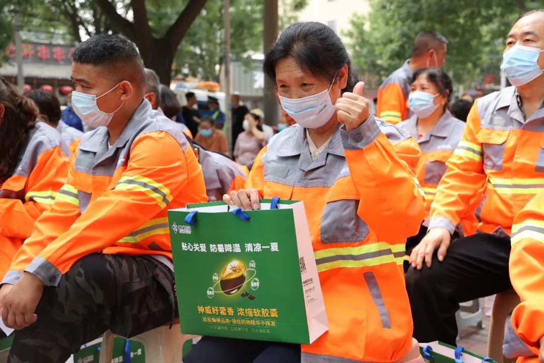 活动现场,星空电竞药业联合星空电竞大药房给高温工作者们赠送了星空电竞清凉大礼包,大礼包里包括星空电竞藿香正气软胶囊、星空电竞梅苏颗粒、矿泉水、一次性口罩等实用性防暑消暑产品,并送上了最真诚的问候与感谢,感谢他们为城市的干净、整洁不惧高温酷暑,嘱咐他们在烈日炎炎的夏日里做好身体防护,呵护大家的同时也给自己的身体健康增添一重保障。