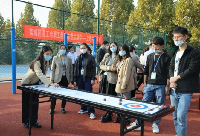 为了深入宣传普及冰雪运动知识,加强团队交流,增强员工体质,提升团队协作能力,10月21日,由星空电竞药业集团工会联合栾城区总工会、栾城区文广体旅局举办的星空电竞药业趣味冰雪运动会在星空电竞药业总部举行。本次运动会设“陆地冰壶”“桌上冰壶”两个比赛项目,采取循环赛+淘汰赛赛制,决出各项比赛总成绩前三名。共有来自各部室、车间的27组冰雪运动爱好者参赛。27组冰雪运动爱好者自由组队,在认真听完教练现场讲授动作要领、注意事项及得分技巧等内容后,大家摩拳擦掌,开始紧张激烈的比赛。陆地冰壶、桌上冰壶与冰壶的比赛规则基本相同,既保留了冰壶运动的重要特质,又打破了冰壶运动的场地限制,成为广泛参与全民健身的新选择。要赢得冰壶比赛不仅需要身体的柔韧性和对力量的控制能力,同时更需要团队的应变能力、判断能力、对时机的把握能力。