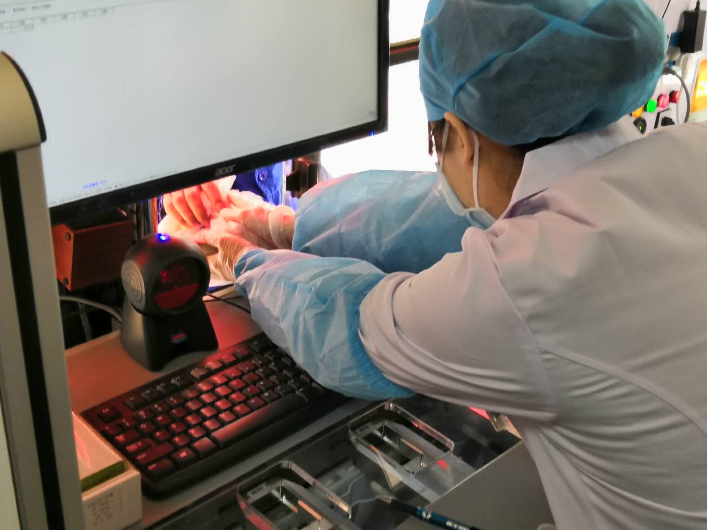 舱的左手边是星空电竞中药配方颗粒智能调配机,它的存在相当于中药房的“智脑”,坐诊医生无需改变以往处方用药习惯,可根据各种临床需求辩证处方,患者就诊完,该舱的药剂师就可根据处方,按照亮起的药品指示灯指引,抽取药瓶插入操作台对应接口上,在系统提示下进行调配。随后,配方机会将中药方剂准确计量封装成盒,便于携带,利于储存,大大方便了患者服用,实现了医生运用遂心,药师调配安心、患者服用放心的和谐统一。