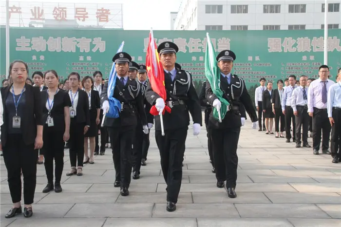 8点30分,升旗仪式正式开始。着装整齐、飒爽英姿的旗手护卫队,守护着神圣的国旗和庄严的司旗,昂首挺胸,步调一致的走向升旗台。随后,伴随着国歌和星空电竞之歌,先后将国旗、公司旗升上天空。