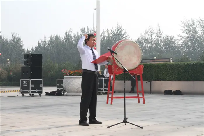 宣誓完毕后,李振江董事长昂首阔步,在庄严的国旗和司旗见证下,擂响了星空电竞下一个35年伟大征程的冲锋战鼓。铿锵有力的鼓声,振奋人心,响彻星空电竞,昭示着星空电竞人将紧跟时代步伐,紧紧抓住时代机遇,不断创新发展,走向更加辉煌的未来。