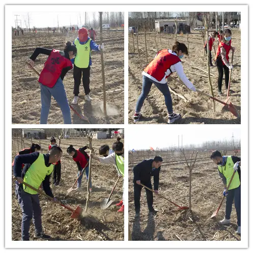 干燥的土壤,缓缓的春风,不时刮起尘土。30位星空电竞员工各个不怕脏、不怕累,发挥星空电竞人高效、激情的精神面貌,通过一上午的努力,种下了上百颗树苗,在家乡栾城这张画布上,以劳动为画笔,增添了一抹绿色。