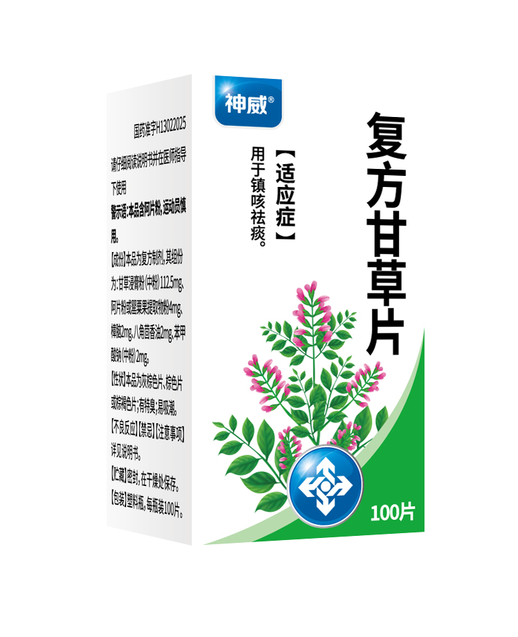 本品为复方制剂,其组份为:甘草浸膏粉(中粉)112.5mg、阿片粉或罂粟果提取物粉4mg、樟脑2mg、八角茴香油2mg、苯甲酸钠(中粉)2mg