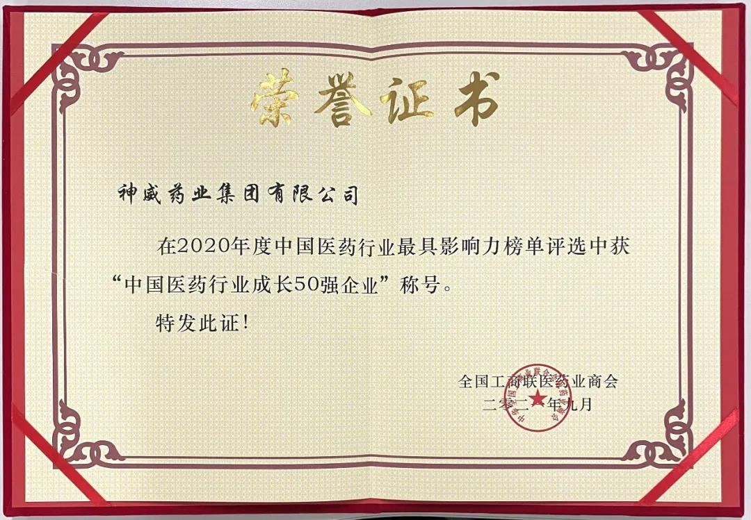 2020年度中国医药行业成长50强