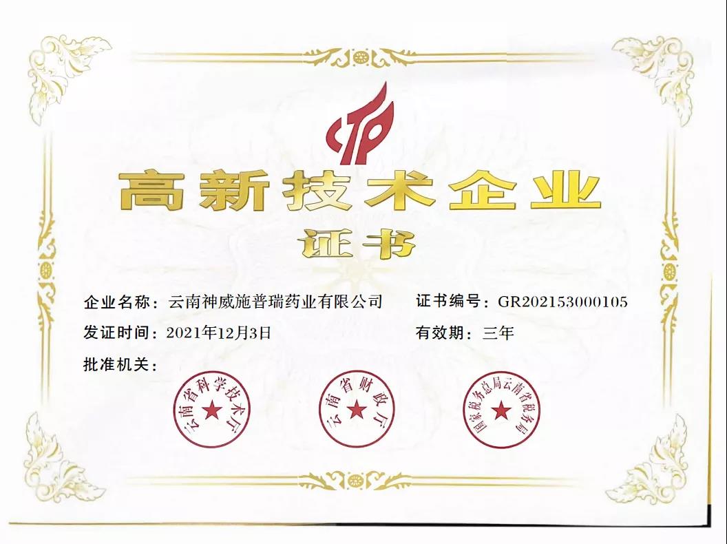 喜讯!云南星空电竞施普瑞药业有限公司入选高新技术企业
