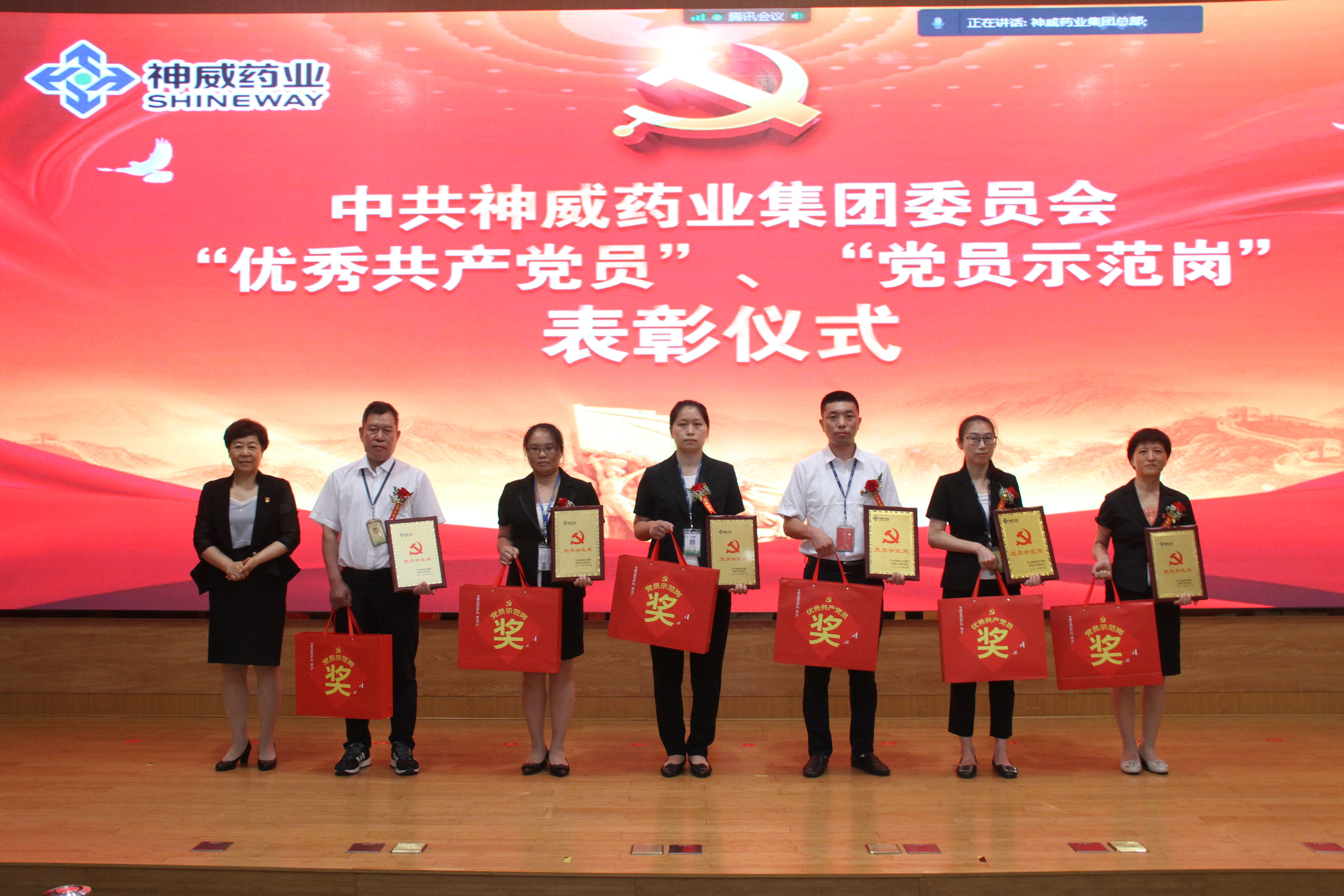 庆祝中国共产党成立100周年大会结束后,集团党委举行了隆重的星空电竞药业 “优秀共产党员”、“党员示范岗”表彰仪式。集团副董事长、党委常务副书记信云霞宣读《关于表彰“优秀共产党员”、“党员示范岗”的决定》,授予为企业做出积极贡献的谷赫沛等17名党员“优秀共产党员”的光荣称号,授予集团物流中心等6个团队“党员示范岗”的光荣称号。