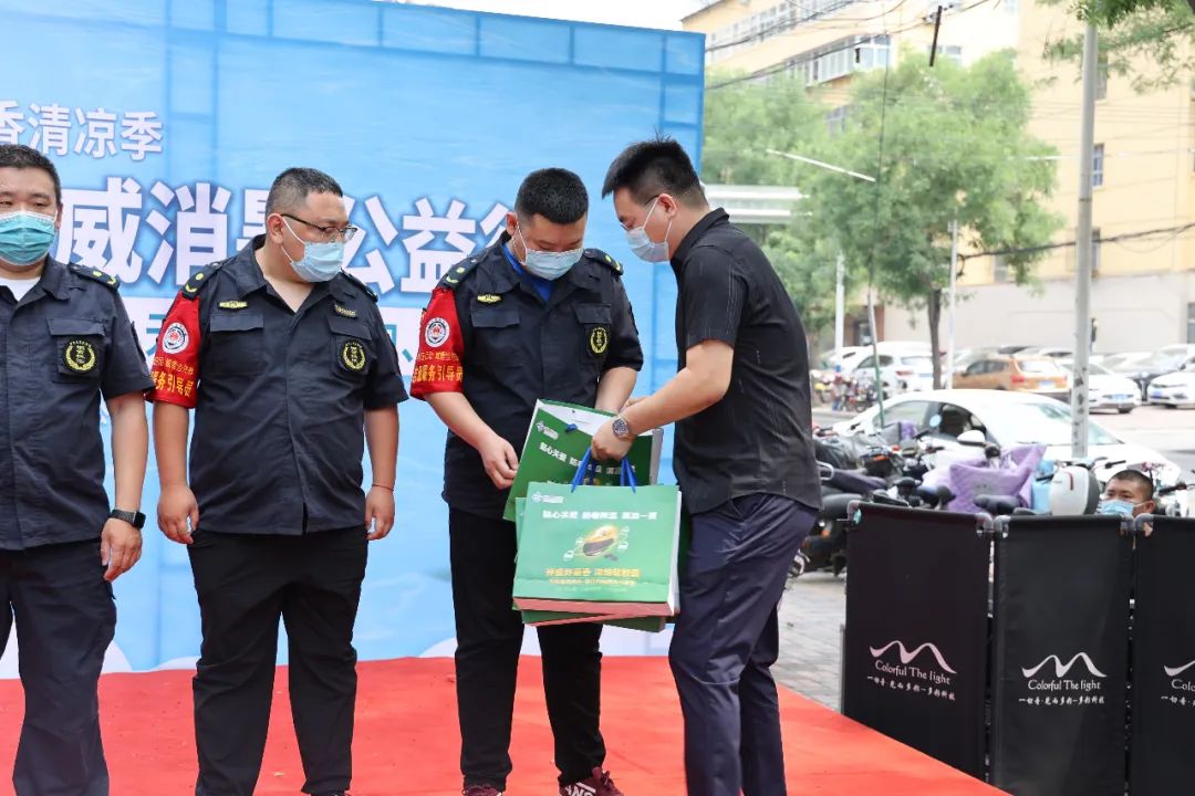 活动现场,星空电竞药业联合星空电竞大药房给高温工作者们赠送了星空电竞清凉大礼包,大礼包里包括星空电竞藿香正气软胶囊、星空电竞梅苏颗粒、矿泉水、一次性口罩等实用性防暑消暑产品,并送上了最真诚的问候与感谢,感谢他们为城市的干净、整洁不惧高温酷暑,嘱咐他们在烈日炎炎的夏日里做好身体防护,呵护大家的同时也给自己的身体健康增添一重保障。