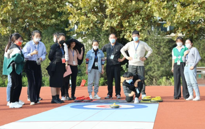 比赛开始后,各参赛组队员手握冰壶,将冰壶一一推向赛道,随着冰壶的增加各组之间开始斗智斗勇,占位、进营、击打。或是我方占据中心得分区,或是对方“啪”的一声将我方冰壶撞出圈外……通过小小的冰壶充分展示出各组的智慧、准度、团结协作等综合实力。