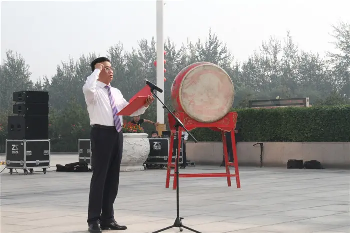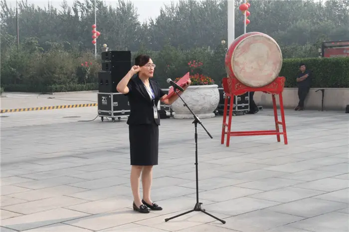 宣誓完毕后,李振江董事长昂首阔步,在庄严的国旗和司旗见证下,擂响了星空电竞下一个35年伟大征程的冲锋战鼓。铿锵有力的鼓声,振奋人心,响彻星空电竞,昭示着星空电竞人将紧跟时代步伐,紧紧抓住时代机遇,不断创新发展,走向更加辉煌的未来。