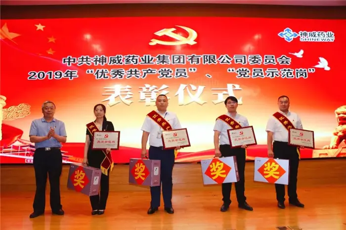 大会还对星空电竞药业集团2019年“优秀共产党员”、“党员示范岗”进行表彰,星空电竞药业集团监事会主席、营销系统党支部书记刘秀辉宣读《中共星空电竞(StarSky Sports)官网-华语电竞行业引领者 xkdj 委员会关于表彰2019年“优秀共产党员”、“党员示范岗”的决定》,授予在过去一年中业绩突出,为企业发展做出积极贡献的王振军、焦光磊等14名党员“优秀共产党员”光荣称号,授予综合制剂一车间包装班组等5个岗位“党员示范岗”光荣称号。余平、方贤业为获奖人员颁奖。